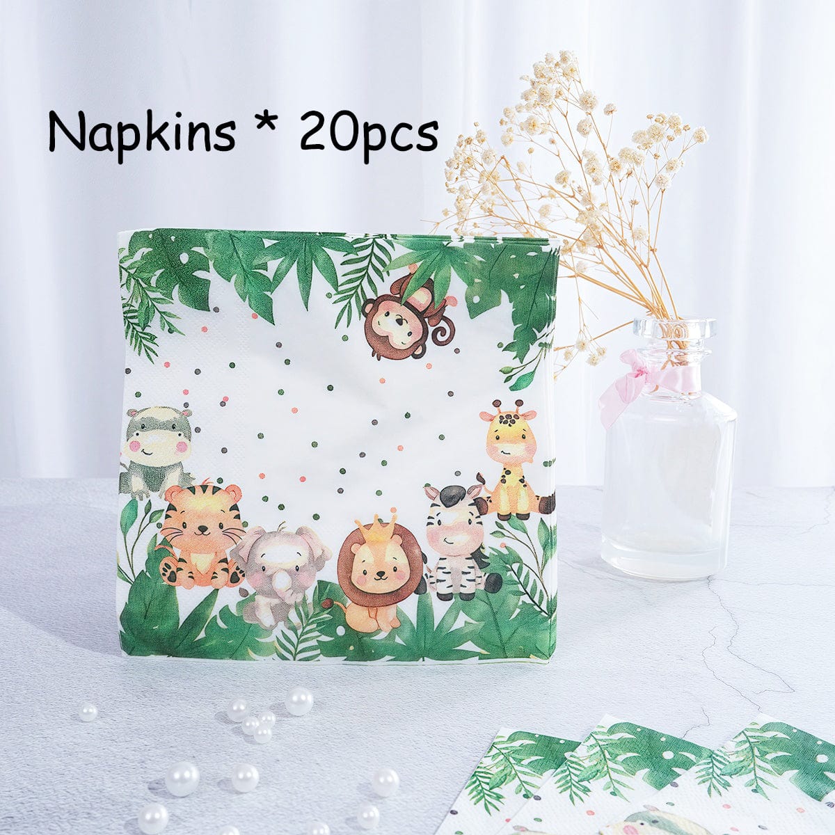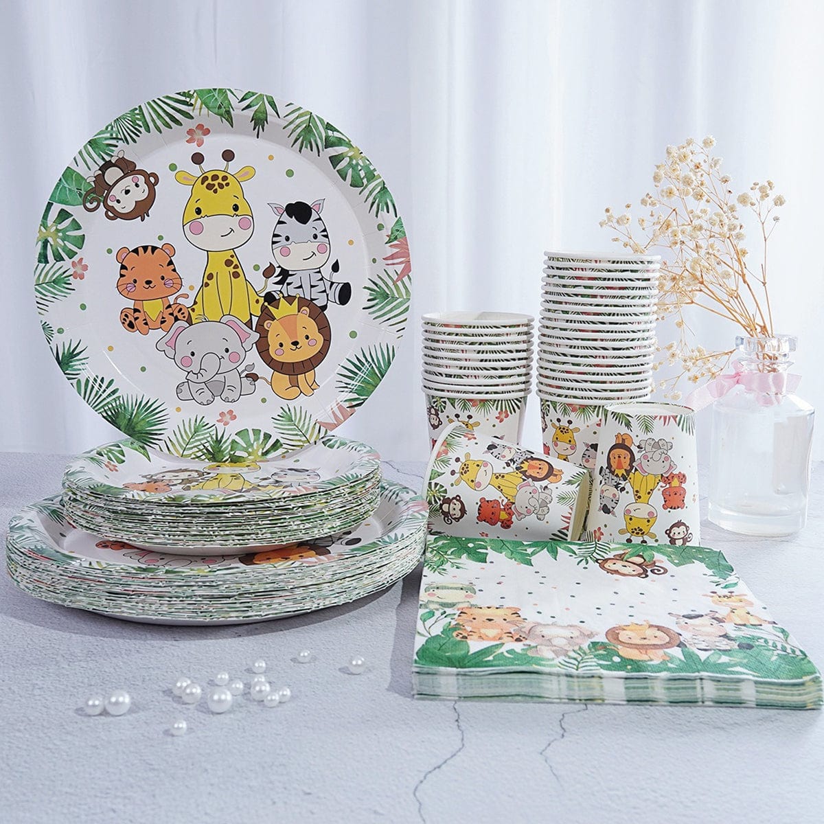Add jungle magic to your little one’s celebration with this adorable Safari Animal Tableware Set! Includes matching plates, cups, and napkins featuring cute jungle animals like lions, elephants, giraffes, and tigers - perfect for kids’ birthdays, baby showers, or safari-themed parties.